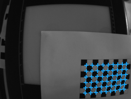 Detects a chessboard calibration grid on the image, and returns calibration points where 4 chessboard squares meet.