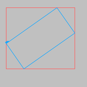 RectangleBoundingBox performed on a rectangle (blue) with parameters: X = 25, Y = 175, Angle = 325, Width = 250, Height = 125.