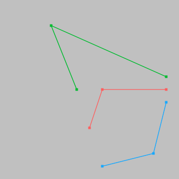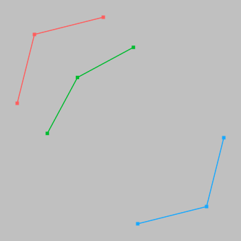 LerpPaths performed on red inPath0 and blue inPath1 with inLambda = 0,25. Green is the resulting outPath.