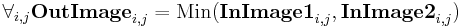 The operation computes the minimum of two images. Each outImage pixel is equal to the darker of the corresponding pixels of the input images.