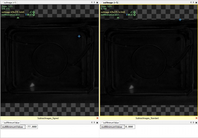 Compare SubtractImages_Signed and SubtractImages performed on the sample images.