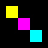 Input RGB image (on the left) converted to single-channel image (on the right) with pixel values obtained from summing with saturation values of input image channels. In the picture on the left-hand side, pixel values in the colorful squares are {255, 255, 0}, {255, 0, 255} and {0, 255, 255}, and their type is UInt8. After addition with saturation, values of corresponding pixels in the output image will be {255} - because maximal value for UInt8 pixels is 255 and min(255 + 0 + 255, 255) is 255. |