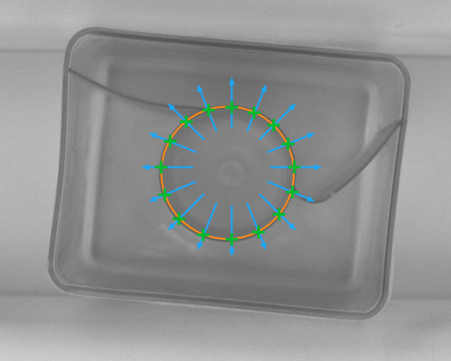 • FitCircleToEdges – Performs a series of 1D edge detections and finds a circle that best matches the detected points.