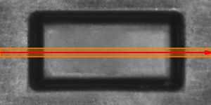 The 1D Edge Detection technique is based on an observation that any edge in the image corresponds to a rapid brightness change in the direction perpendicular to that edge. Therefore, to detect the image edges we can scan the image along a path and look for the places of significant change of intensity in the extracted brightness profile.