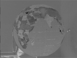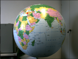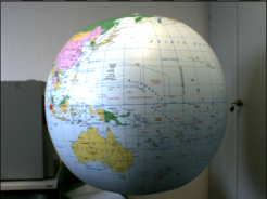 Example of remapping of a spherical object using CreateSphereMap and RemapImage. Image before and after remapping.