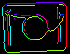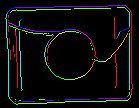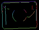 Matching object edges instead of an object as a whole requires slight modification of the original pyramid matching method: imagine we are matching an object of uniform color positioned over uniform background. All of object edge pixels would have the same intensity and the original algorithm would match the object anywhere wherever there is large enough blob of the appropriate color, and this is clearly not what we want to achieve. To resolve this problem, in Edge-based Matching it is the gradient direction (represented as a color in HSV space for the illustrative purposes) of the edge pixels, not their intensity, that is matched.